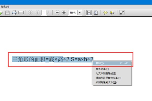 以adobe reader的閱讀器為例,在該閱讀器中打開對應的PDF文件。使用鼠標左鍵選中需要的公式,點擊右鍵進行復制。然后在打開的WORD中選擇粘貼即可實現(xiàn)。具體的操作方法如下: