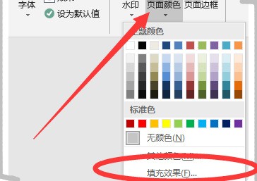 5、然后點擊其中的“頁面顏色”,在下拉選項中點擊“填充效果”。