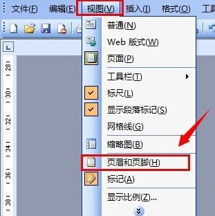 選擇“頁眉和總際頁腳”,具體位置為:“視圖”——“頁眉和頁腳”。
