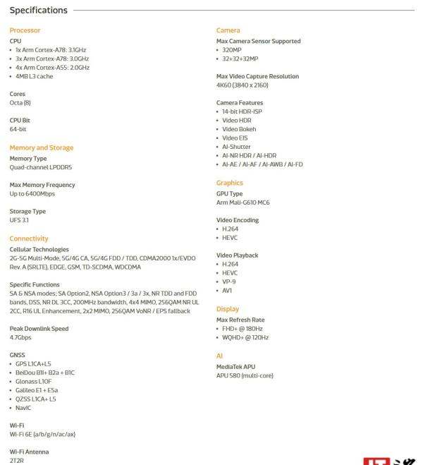 一、核心硬件規格對比:與天璣 8200 完全一致根據聯發科官網信息及技術規格對比,天璣 8250 與天璣 8200 在以下關鍵參數上無差異: