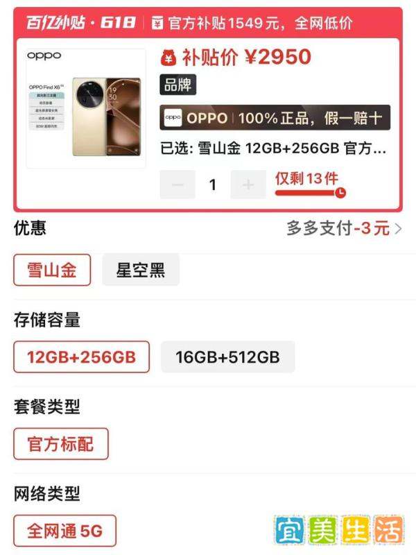 OPPO Find X6在配置上具備哈蘇三主攝、天璣9200處理器、4800mAh電池等高端特性,且發(fā)布價(jià)4499元的12GB+256GB版本在618期間跌至2950元,降幅達(dá)1549元,成為中端市場(chǎng)極具性價(jià)比的選擇。以下從核心配置、價(jià)格調(diào)整及市場(chǎng)定位三方面展開分析: