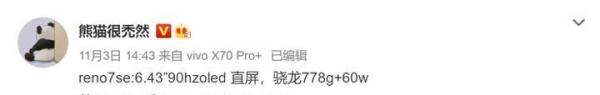 OPPO Reno7 SE曝光:搭載驍龍778G,支持60W快充,性價比極高