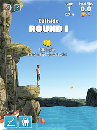 當然,如果玩家不小心讓跳水運動員撞到旁邊的石頭上,就會Game Over。