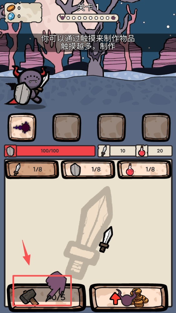 1、在制作界面,通過觸摸屏幕合并相同的物品,制作出新物品。